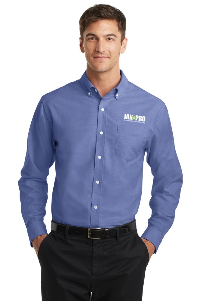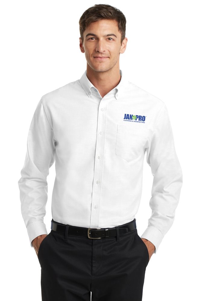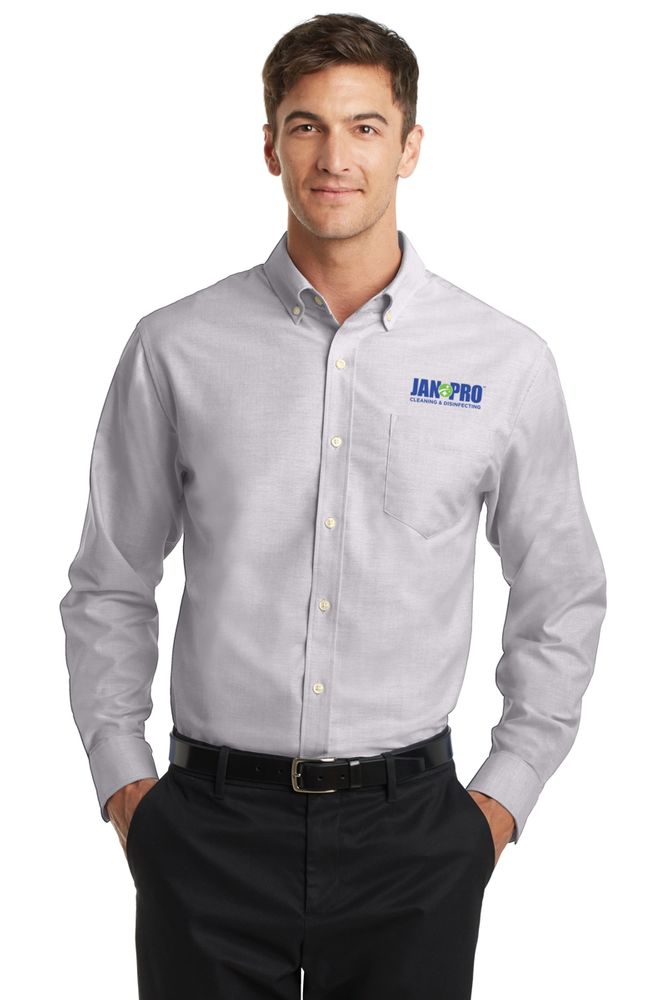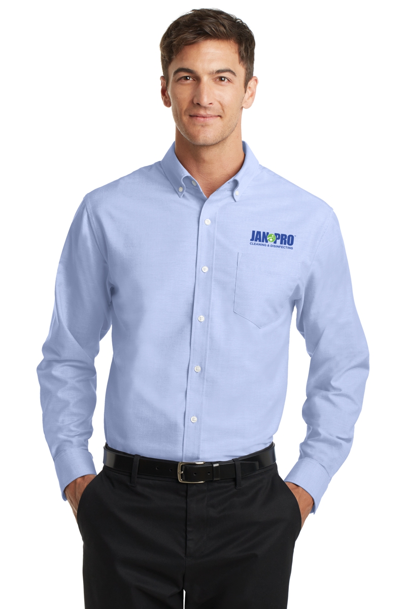 Look your best in a tried-and-true oxford that performs. Designed to resist and release stains, our SuperPro Oxford has a soft hand and a wrinkle-free finish to keep you looking neat and professional all day long. 4.6-ounce, 60/40 cotton/poly. Back yoke with knife pleats. Button-down collar. Left chest pocket. Button-through sleeve plackets. Two-button adjustable cuffs.