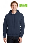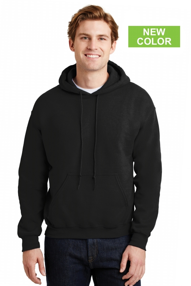 Heavyweight 8-oz. blended hoodie sweatshirt. Anti-pill; set in sleeves; pre-shrunk 50% cotton, 50% polyester. Double lined hood with drawstring.