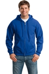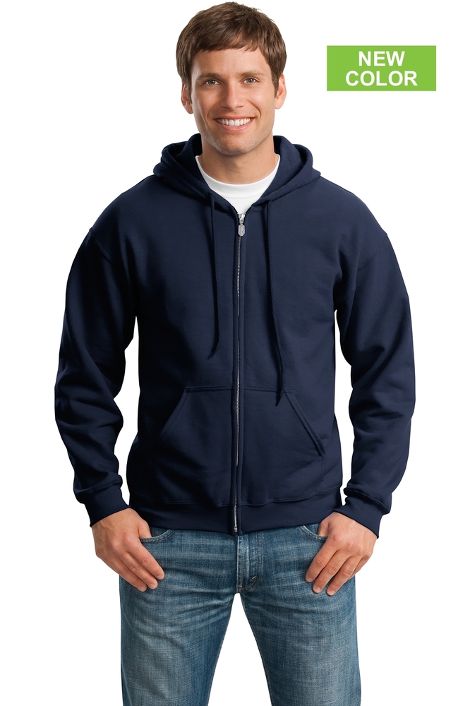 Heavyweight 8-oz. blend full-zip hooded sweatshirt. Anti-pill; set in sleeves; pre-shrunk 50% cotton, 50% polyester. Single lined hood with drawstring.
