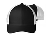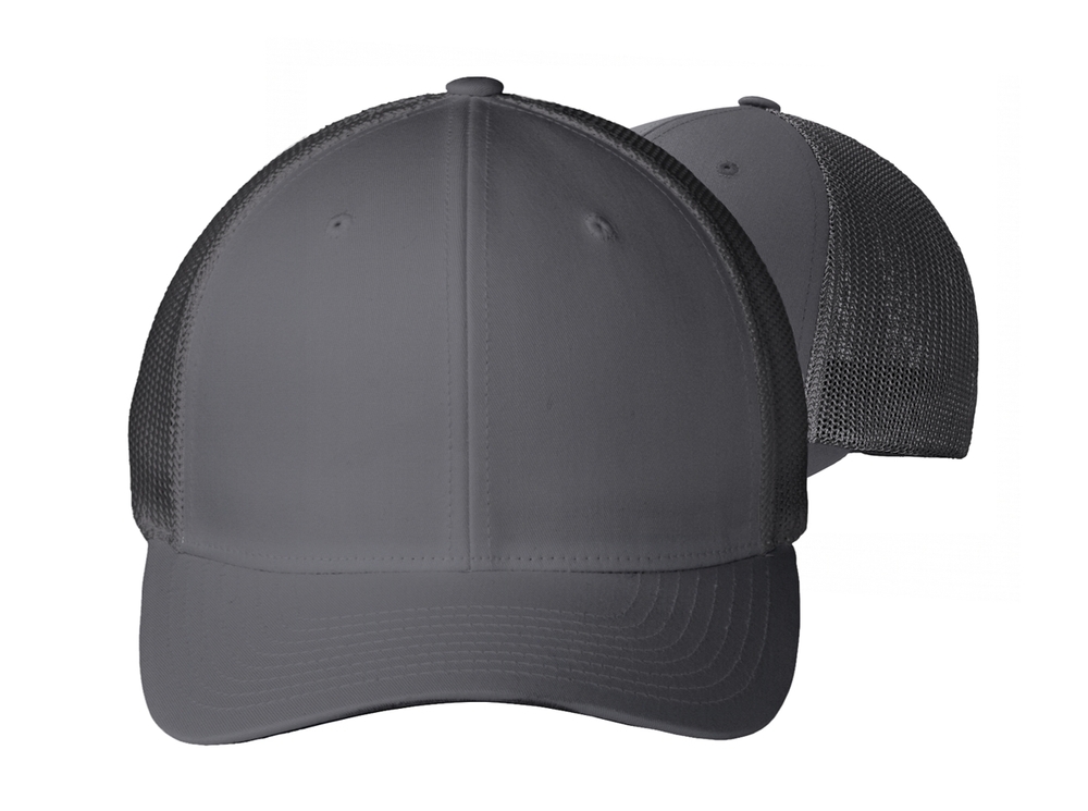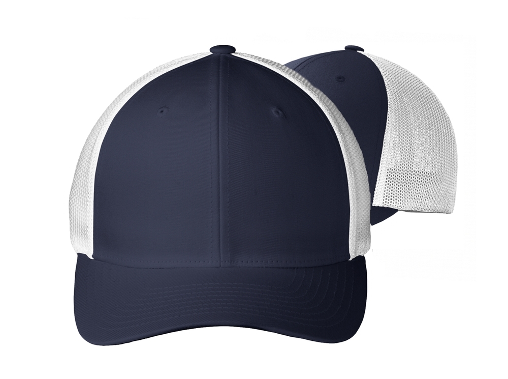 2-Tone Truckers Cap. Mesh back, perfect to keep cool in the summer. 55% polyester, 43% cotton, 2% spandex. 6-panel, structured, mid-profile. 3½" crown. Eight-row stitching on bill.