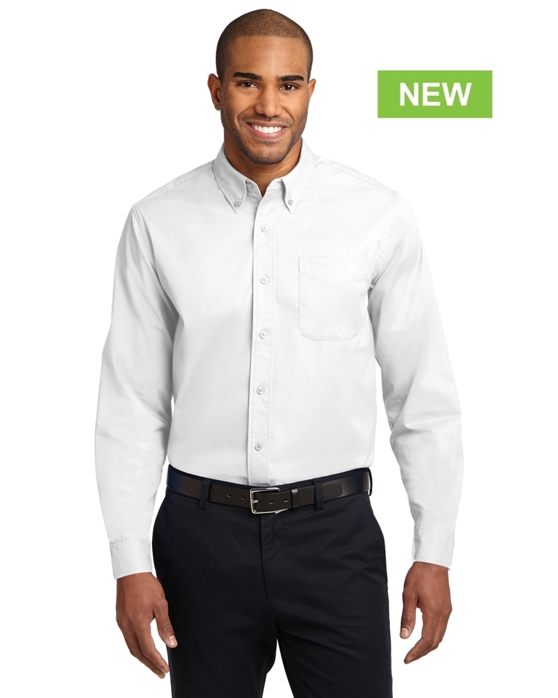 This comfortable wash-and-wear shirt is indispensable for the workday. Wrinkle resistance makes this shirt a cut above. 4.5-ounce, 55/45 cotton/poly. Button-down collar. Dyed-to-match buttons. Left chest pocket. Box back pleat. Adjustable cuffs.