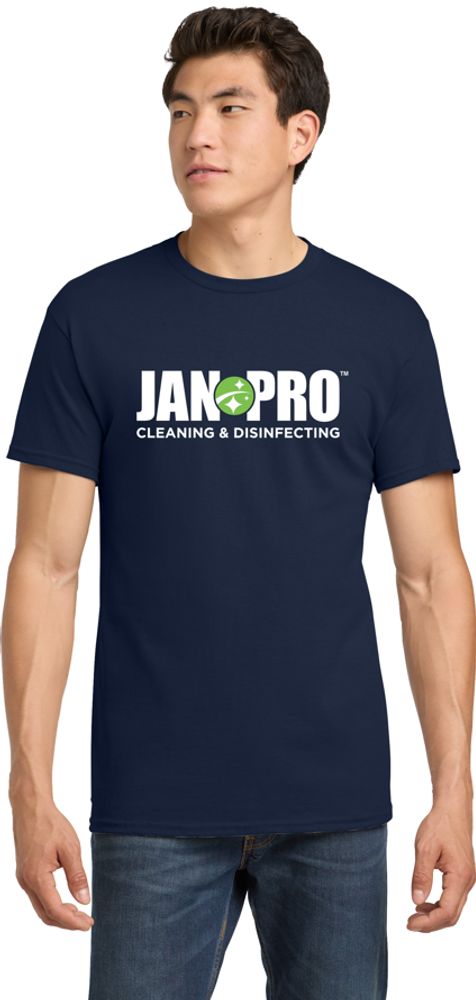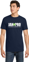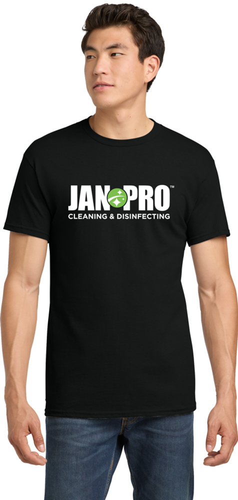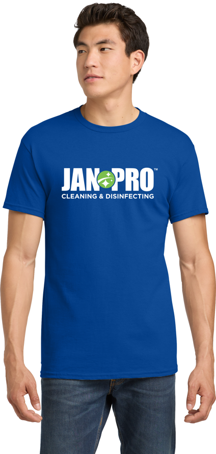 Printed on Full Front Center Chest with 2-Color Jan-Pro logo.