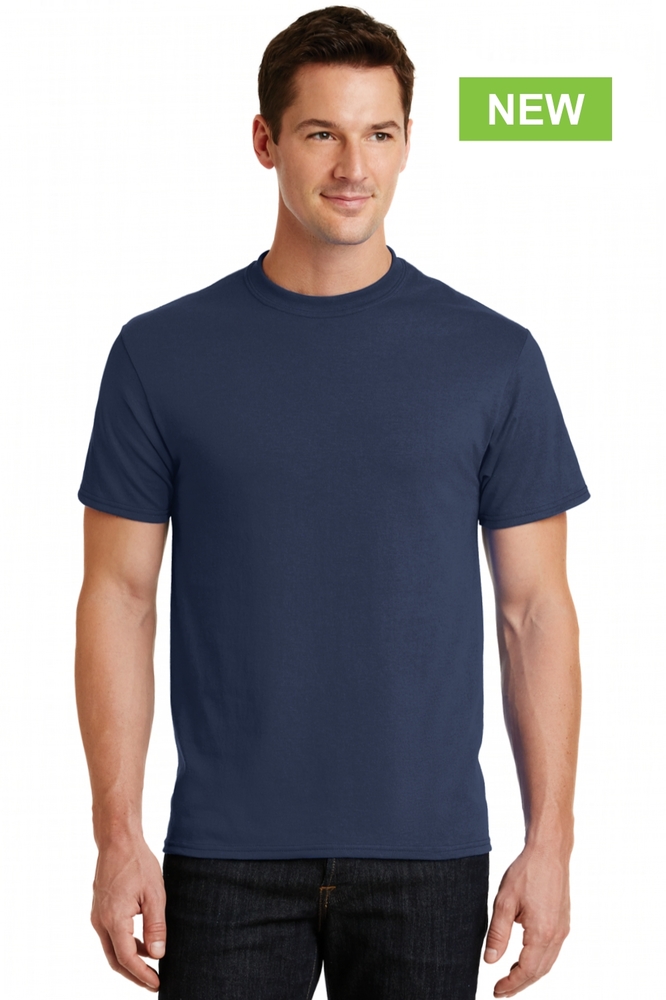A reliable choice for comfort, softness and durability. 5.5-ounce, 50/50 cotton/poly. Made with up to 5% recycled polyester from plastic bottles.