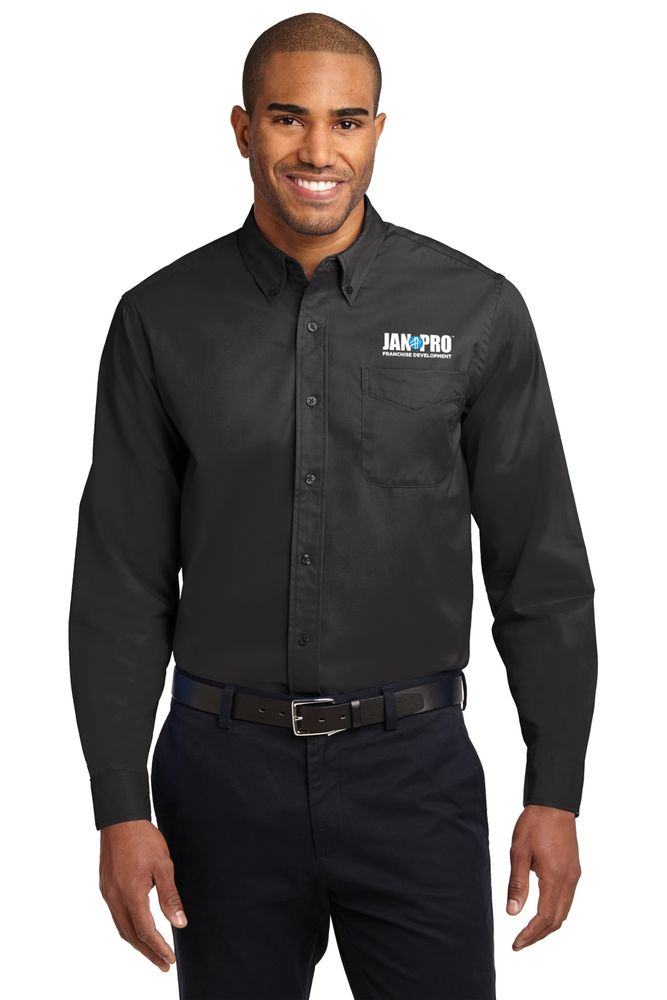 This comfortable wash-and-wear shirt is indispensable for the workday. Wrinkle resistance makes this shirt a cut above. 4.5-ounce, 55/45 cotton/poly. Button-down collar. Dyed-to-match buttons. Left chest pocket. Box back pleat. Adjustable cuffs.