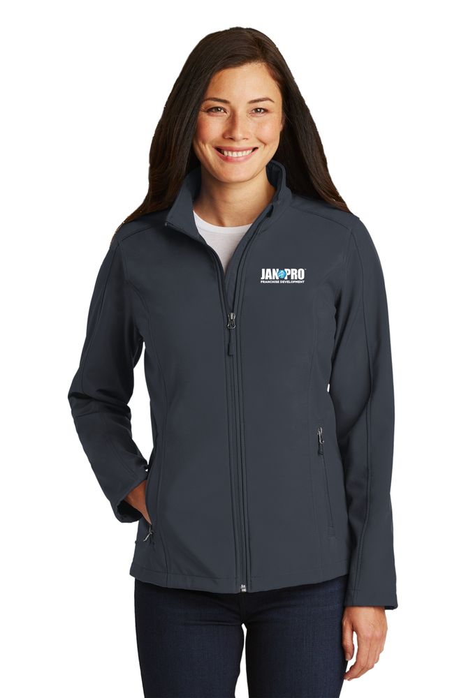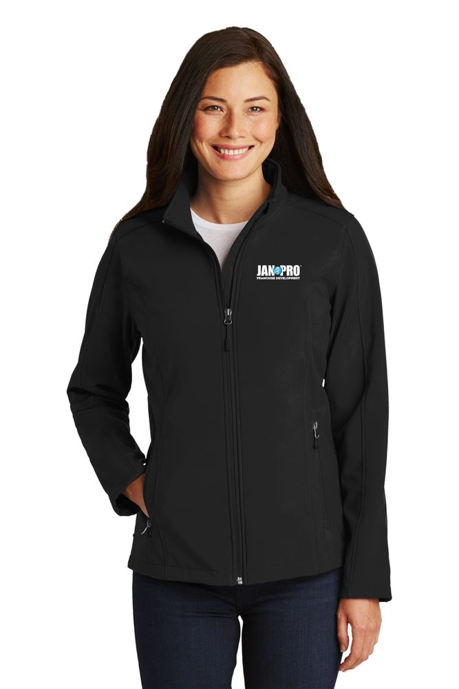 A reliable soft shell at a real value. This Ladies go-to basic sheds wind and rain and is a perfect choice.100% polyester woven shell bonded to a water-resistant film insert and a 100% polyester microfleece lining. 92/8 poly/spandex woven shell bonded to a water-resistant film insert. 1000MM fabric waterproof rating. 1000G/M2 fabric breathability rating. Zip-through cadet collar with chin guard. Reverse coil zippers. Front zippered pockets. Open cuffs and hem.